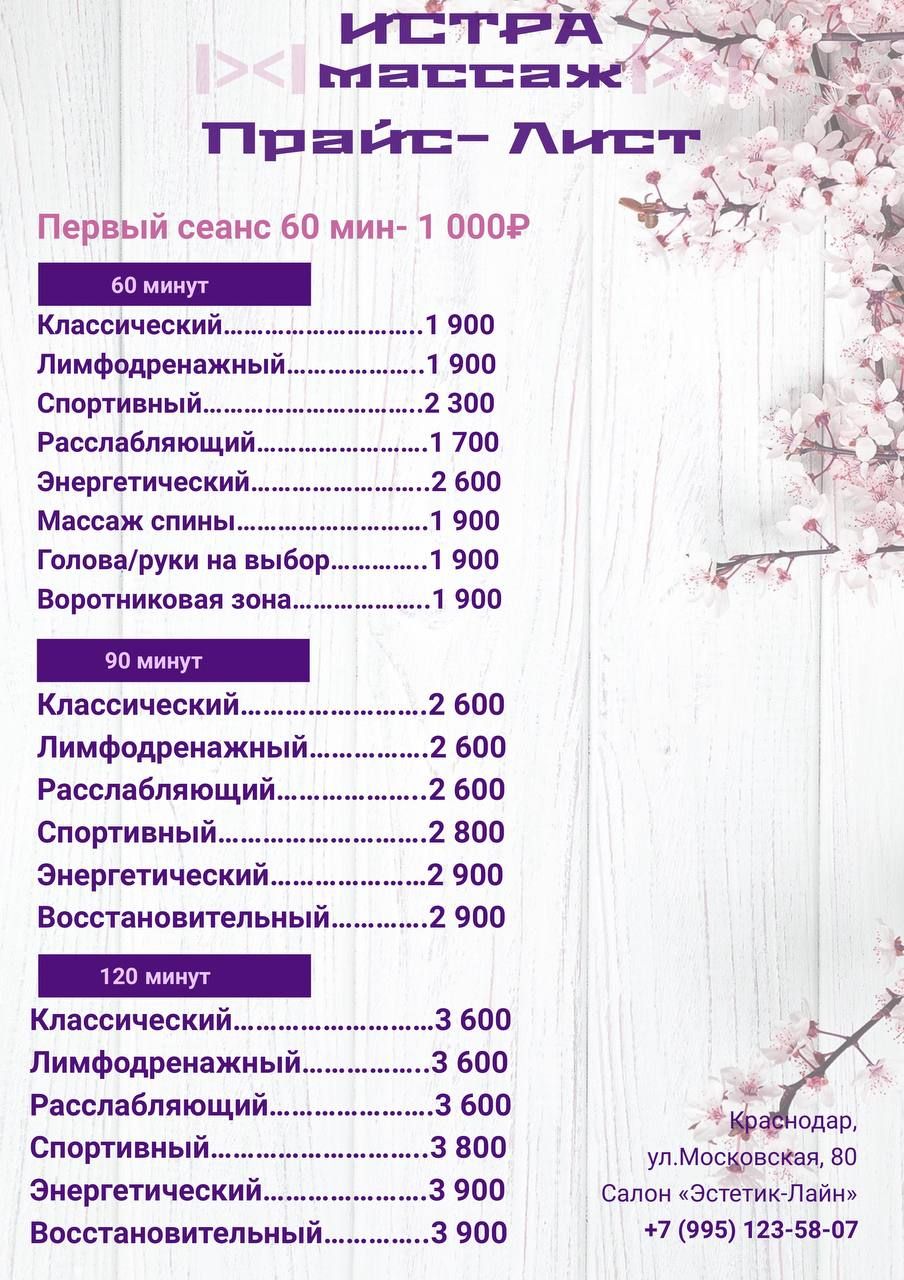 Программа массажа с учетом Ваших пожеланий
